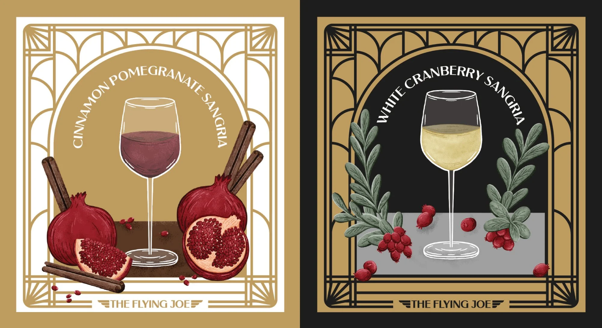These custom wine labels were created as part of a limited seasonal collaboration between The Flying Joe and Urban Pine Winery. The goal was to design a cohesive set of labels that felt elevated, collectible, and aligned with The Flying Joe’s art deco-inspired brand direction