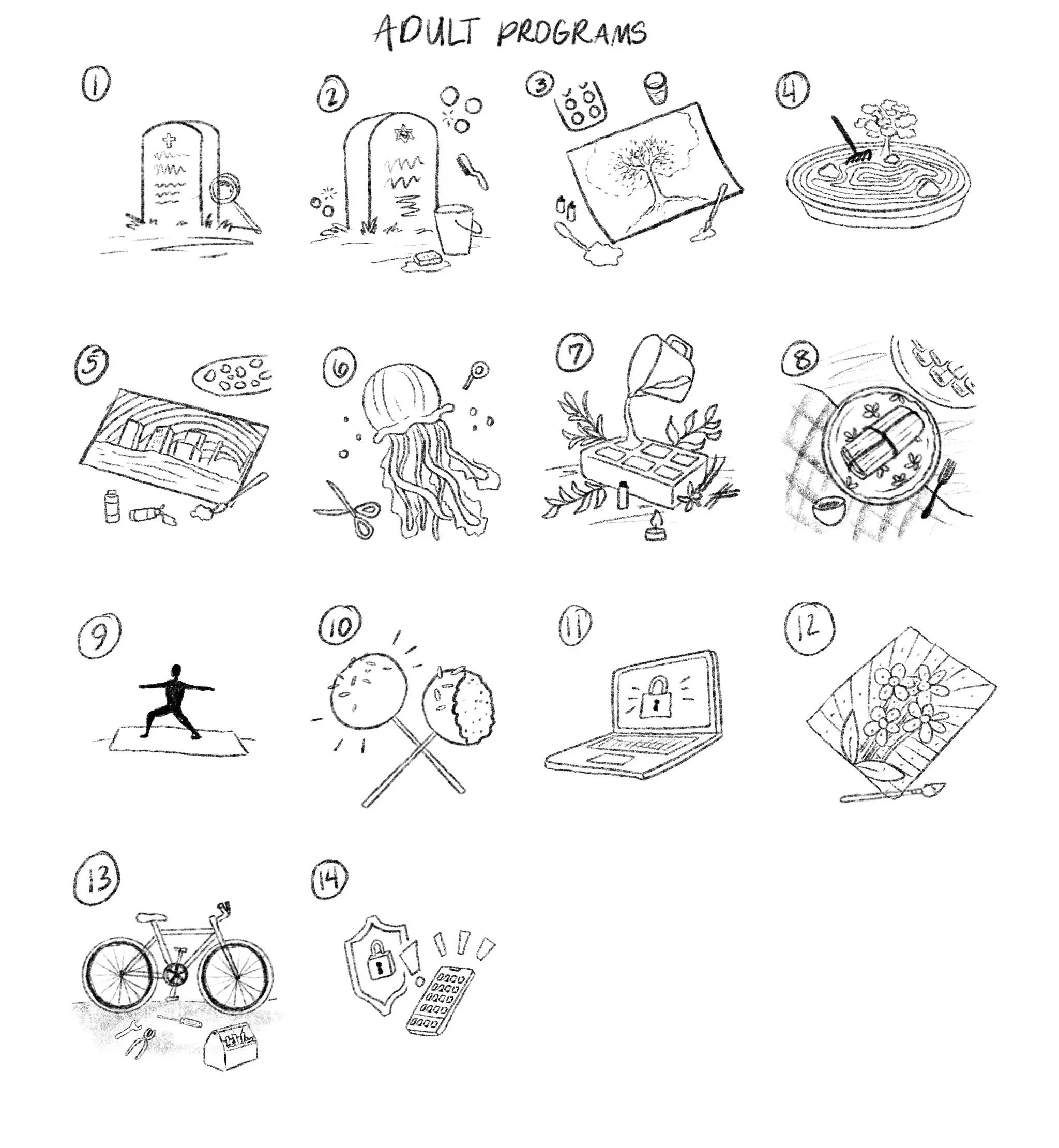 The Toledo Lucas County Public Library needed a cohesive set of custom illustrations to promote their summer programming across youth, teen, and adult audiences. The goal was to create a visual system that felt bright, playful, and approachable—while remaining flexible enough to work across a wide range of platforms.